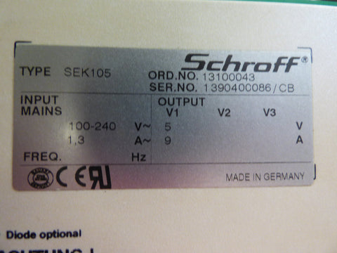 Schroff TYPE SEK 105 Power Supply 5v 9amp